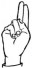 На ћирилици написано ЈАНОШ РАДОЈЕВИЋ састоји се из 14 слова [?]. Исписано ћириличном једноручном азбуком за глувонеме: